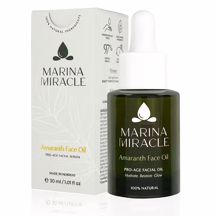 Oljan innehåller amarantfröolja och arktiskt tranbärsextrakt som förnyar och förbättrar hudens struktur och återfuktar på djupet. Amarantfröolja är rik på squalene som är en av huvudbyggstenarna i hudens sebum. Innehåller även hampaförolja som har fina anti-age egenskaper. Fukten i produkten kommer från rosvatten.